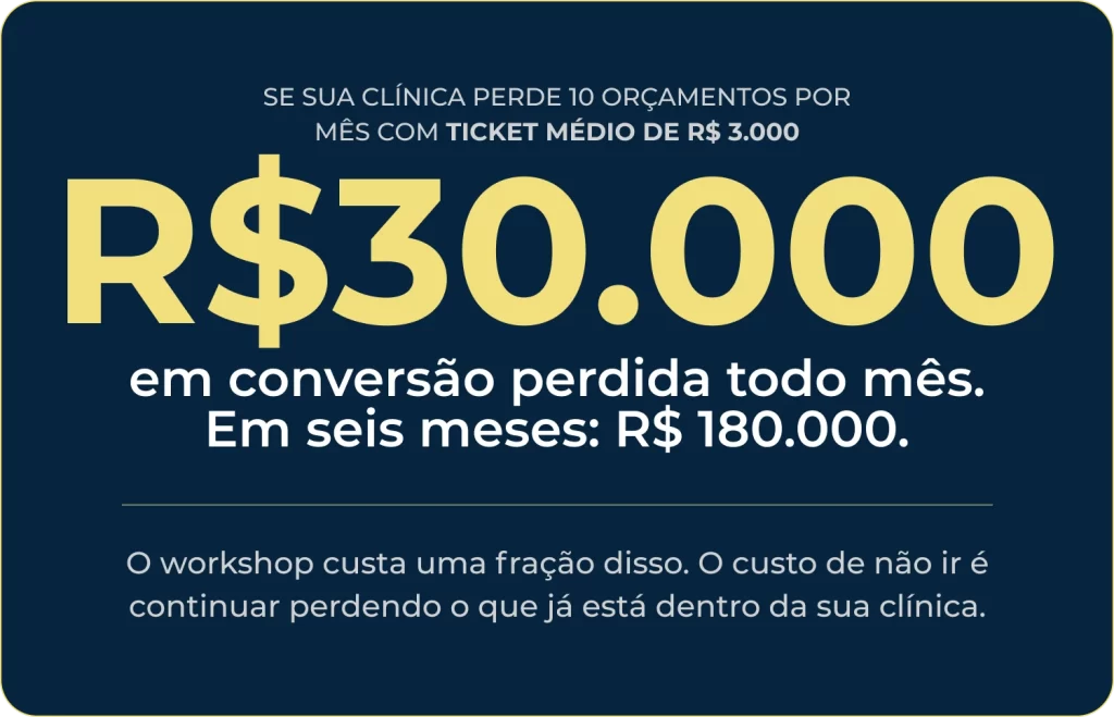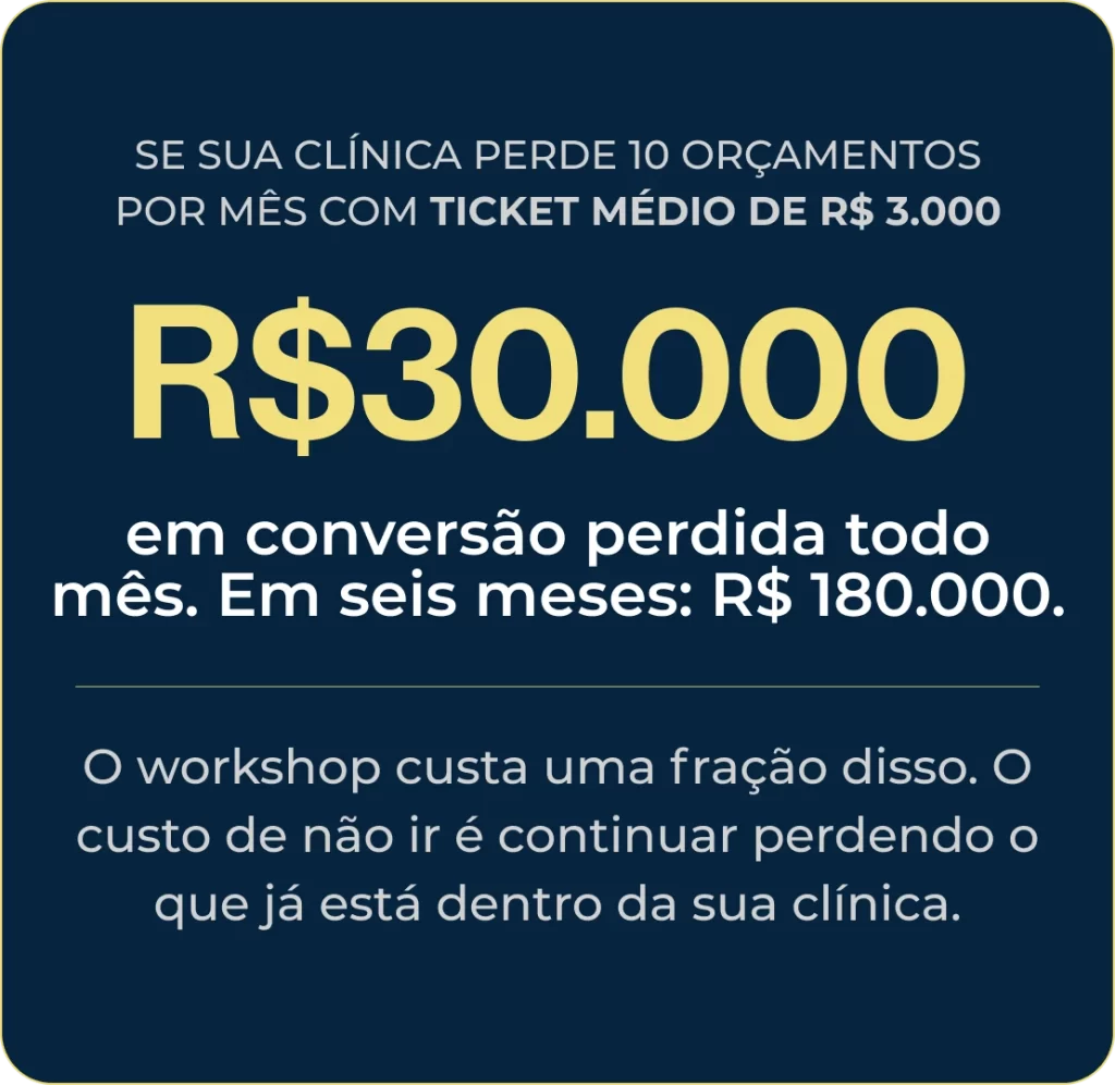Paciente que não fecha orçamento é lucro perdido. Em um dia, você aprende a parar de perder o que já está dentro da sua clínica.
